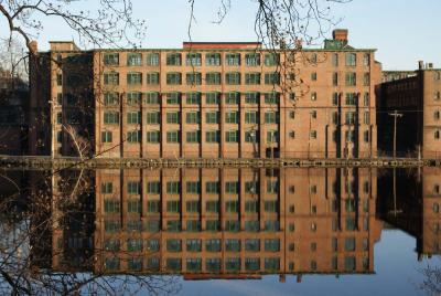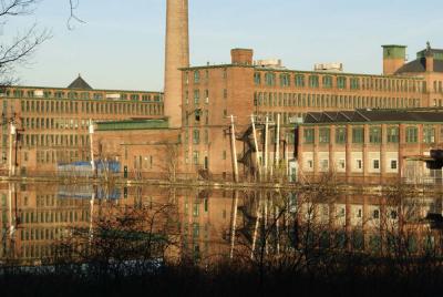 auf der anderen seite des flusses ist die berühmte Waltham uhrfabrik...