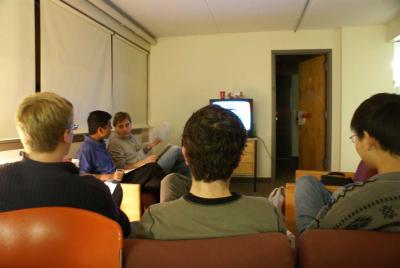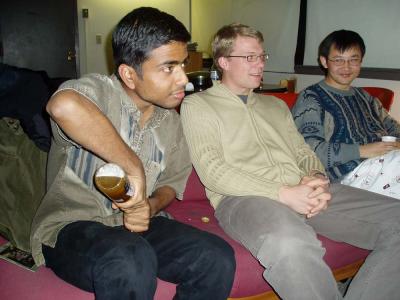 we also watched a bunch of movies... usually, these were "Friends" or "South Park", "Futurama" or "Simpsons", sometimes stupid dating shows on MTV, during the Thanksgiving break, also a lot of old James Bond films. the last night before Stephan and Schini left we even watched "Batman Forever", since the vote was not in favor of more intelectual "Bolivia" or "Singing in the Rain". in fact, we did watch "The Doors" with Tathagata and Seyit after the Germans left and maybe more movie nights are yet to come. they are good for winter nights.