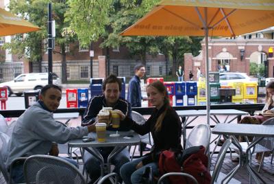 after the tour of boston which was celebrating some religious festival in the italian district, ergys took us to cambridge, the town of harvard and M.I.T. that's just how i imagined it. small streets with bars, parks and university buildings, lots of students here and there, musicians playing round every corner... also, bookstores, how without them...