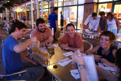 katie, diego, tathagata, simon, seyit, murat, schini & uli eating risotto for the first time in my place. as we have no table in the house, the ground served well...